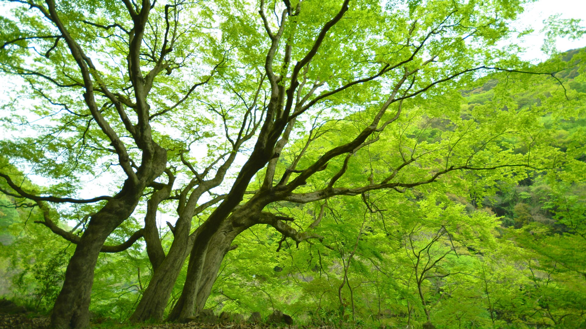 新緑に染まる青モミジとトンネルの絶景