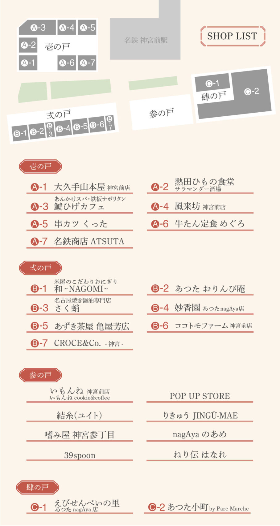 - アクセス:名鉄「神宮前」駅西口すぐ