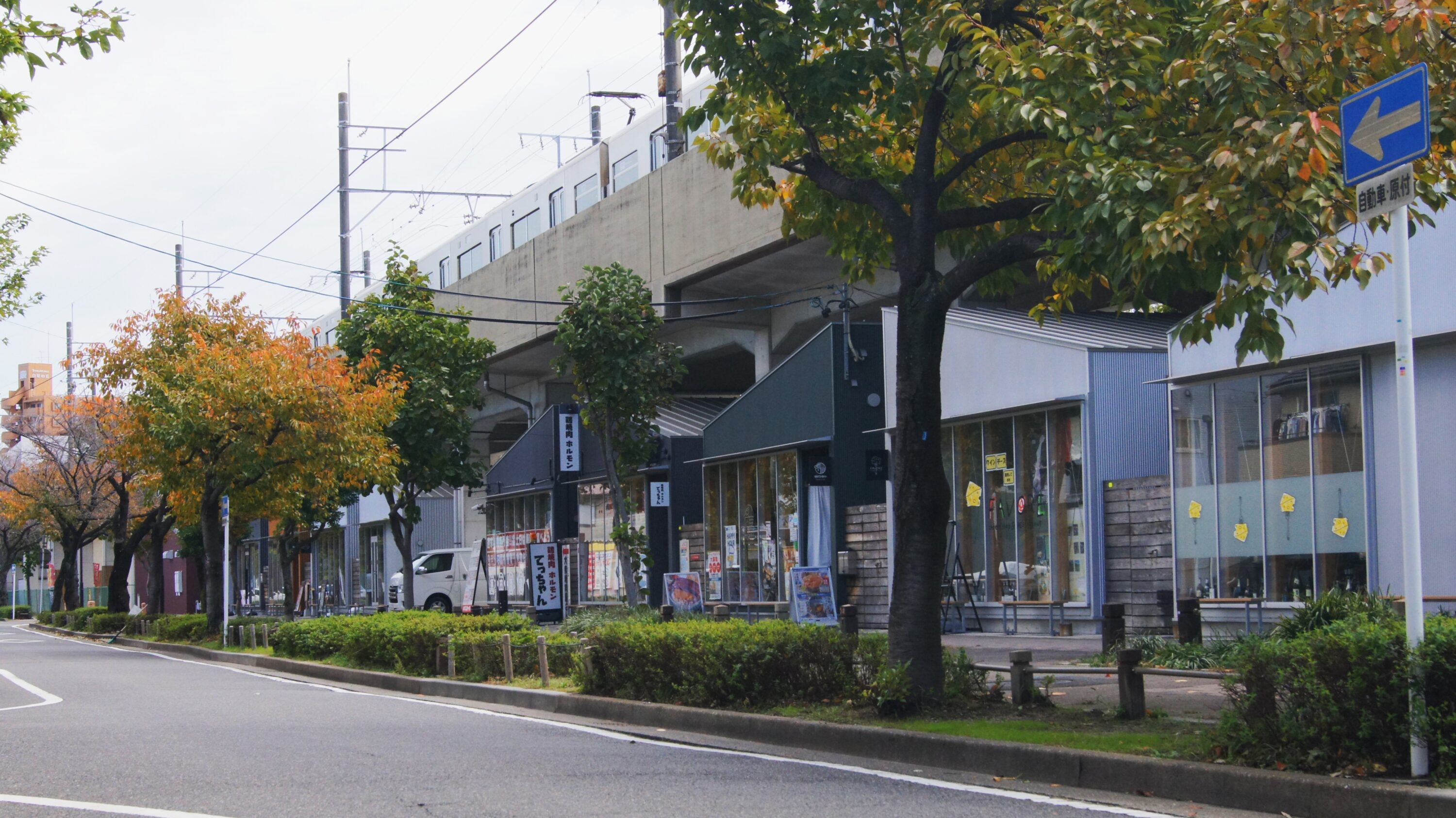 「楽しい暮らしをつくる」をコンセプトに駐車場を改修して作られた新しい商店街は、線路の高架下に続く桜並木の景観を活かしたものになっています。地域密着型のパン屋、お菓子屋、保育施設などがオープンし、若い女性を中心に桜のシーズンには多くの人でにぎわいます。
