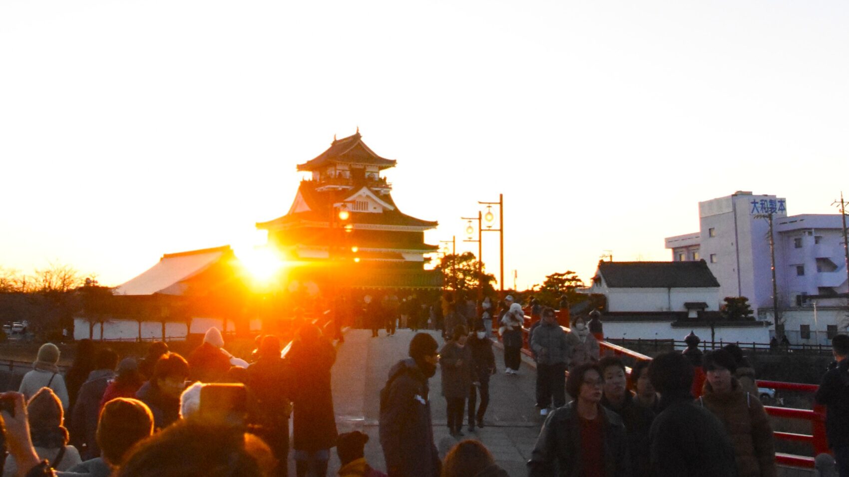 平成元年(1989)年に再建された模擬天主では、例年正月には初日の出イベントが開催。普段は9:00開館ですが、元旦に限り日の出から開館します。2日と3日は9:00からになりますが、特別開館します。