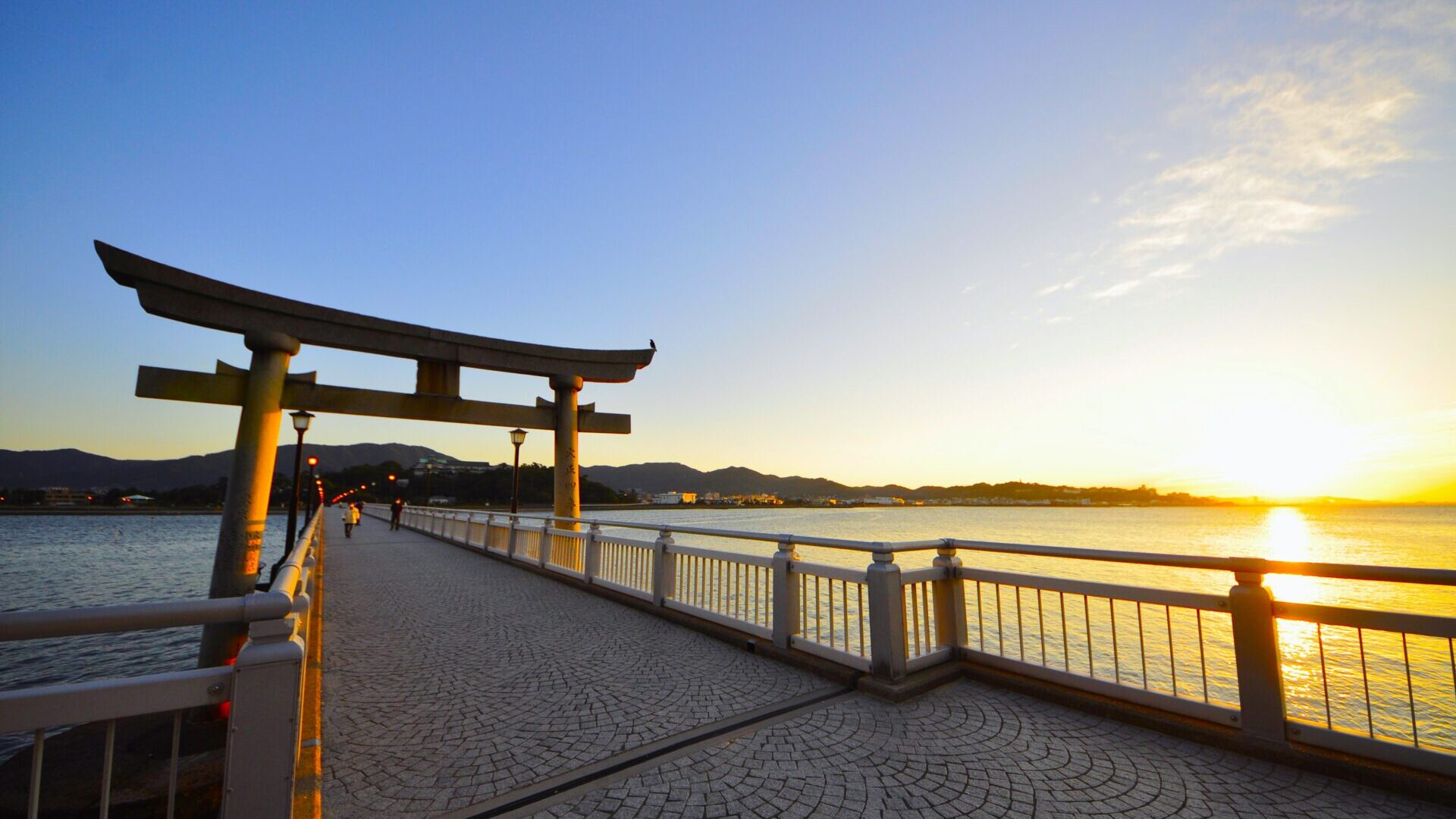 毎年、大晦日から多くの人が初詣に訪れる人気の神社で初日の出を拝んでみてください。島に渡らず、対岸から海と島のシルエットを眺めるのもおすすめです。