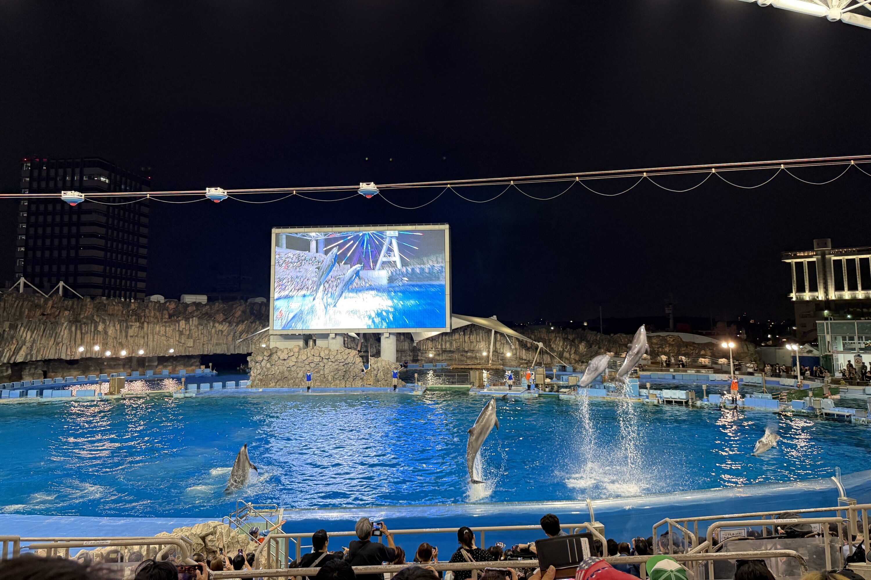 日本最大規模のプールでは、19:00からナイトパフォーマンスを実施。ナイター照明のなか、昼間とは違う雰囲気でイルカショーを楽しめます。17時以降は入館料が約2割引になるお得な夜間料金も設定されているので、夕方からのお出かけにもおすすめです。