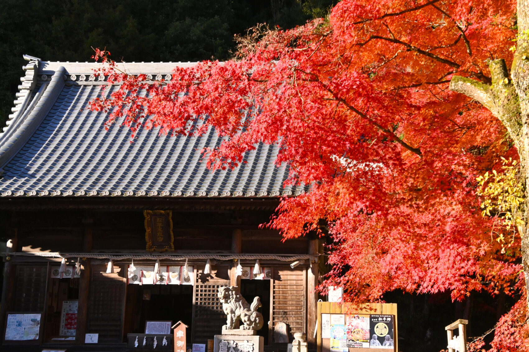 歴史を感じる本堂や境内に建つ鐘楼が、鮮やかなモミジを引き立て、趣のある空間での紅葉狩りが楽しめます。鐘楼の屋根などに使われている赤津瓦は、現在作られていない貴重なものです。ぜひ紅葉と合わせてご覧ください。