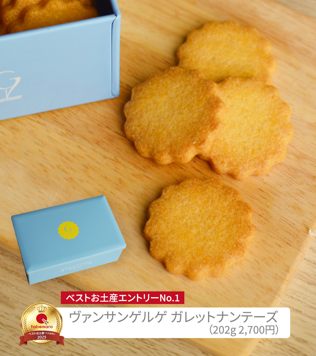 2025年大賞に選ばれたのは、フランス・ナントを拠点とする世界的パティシエ・ヴァンサンゲルレの「ガレットナンテーズ」。ジェイアール名古屋タカシマヤに日本唯一の常設店舗であるビスキュイ専門店「VINCENT GUERLAIS BISCUITS」があり、ガレットナンテーズは定番商品のひとつです。