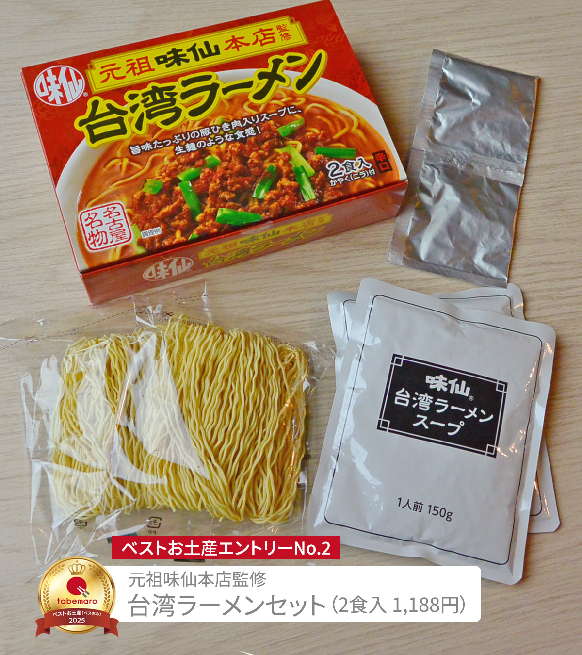 名古屋めしの名店「味仙本店」監修の台湾ラーメン2食セット。辛旨スープとパンチのある味で、名古屋らしさをそのまま持ち帰れます。自分好みの具材をトッピングすれば、自分だけの台湾ラーメンができあがりです。