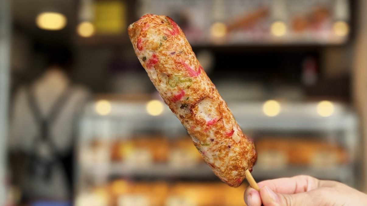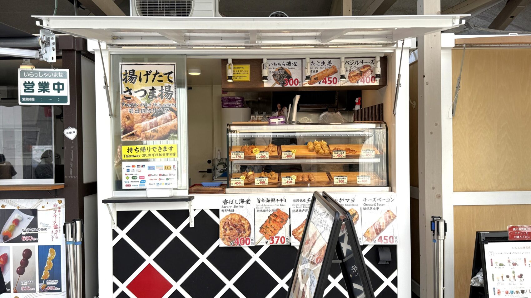 これまでの百貨店業態で提供していたさつま揚げや磯辺揚げなどをひと串に刺しワンハンドで食べられるように。「お魚すりみ惣菜」をコンセプトに掲げており、こだわりのねりものを手軽に味わえます。