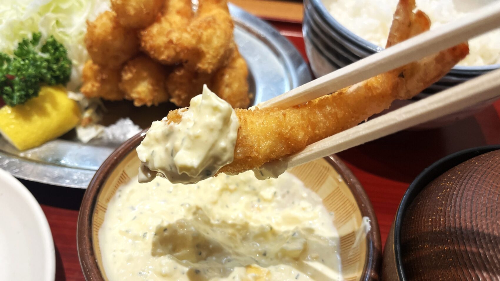 アツアツの「海老ふりゃ~」はタルタルソースと一緒にいただくと後味もさらりとしておすすめ。ぜひ味わってみてください。