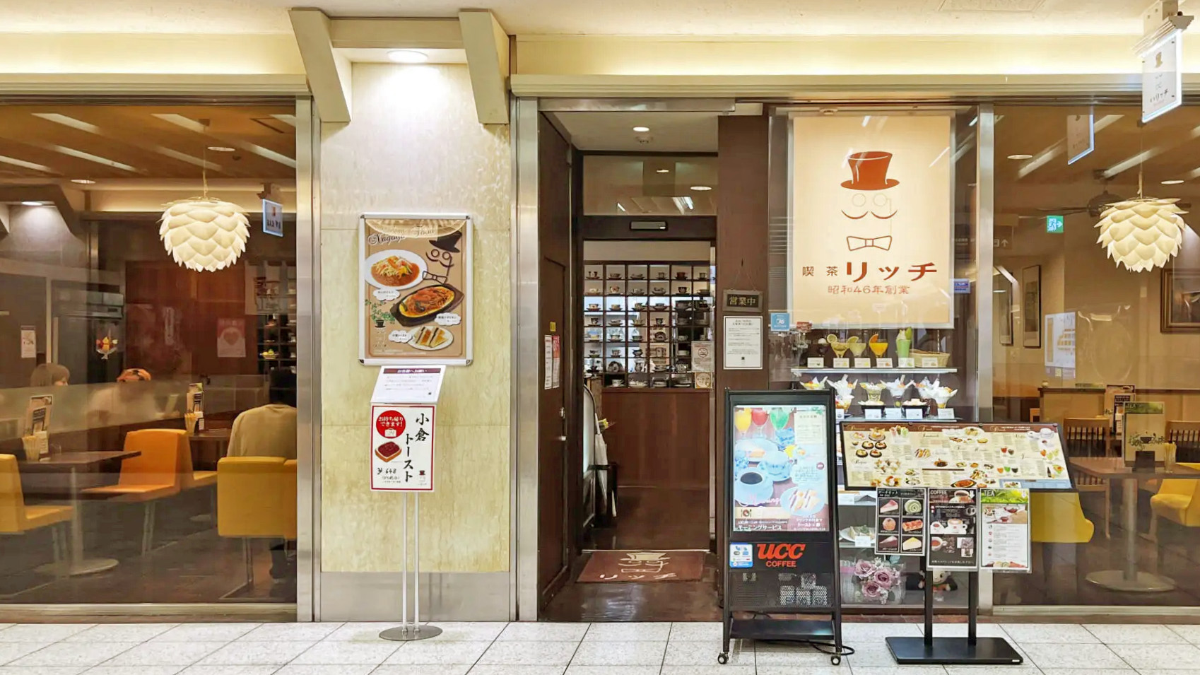 エスカ開業当初から続く老舗純喫茶「喫茶リッチ」。レトロな店内で、小倉トーストや鉄板ナポリタンなど、名古屋らしい喫茶メニューを楽しめます。