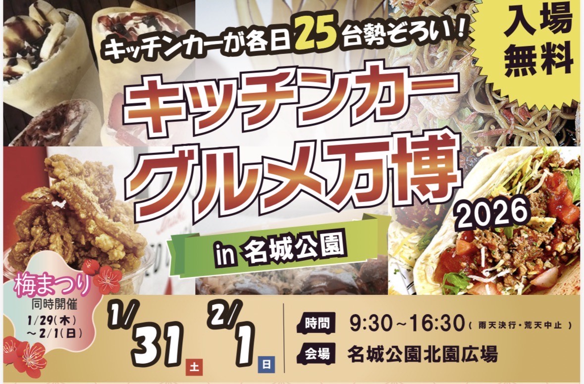 - キッチンカーグルメ万博(名城公園)(名古屋市)|1月31日(土)・2月1日(日)