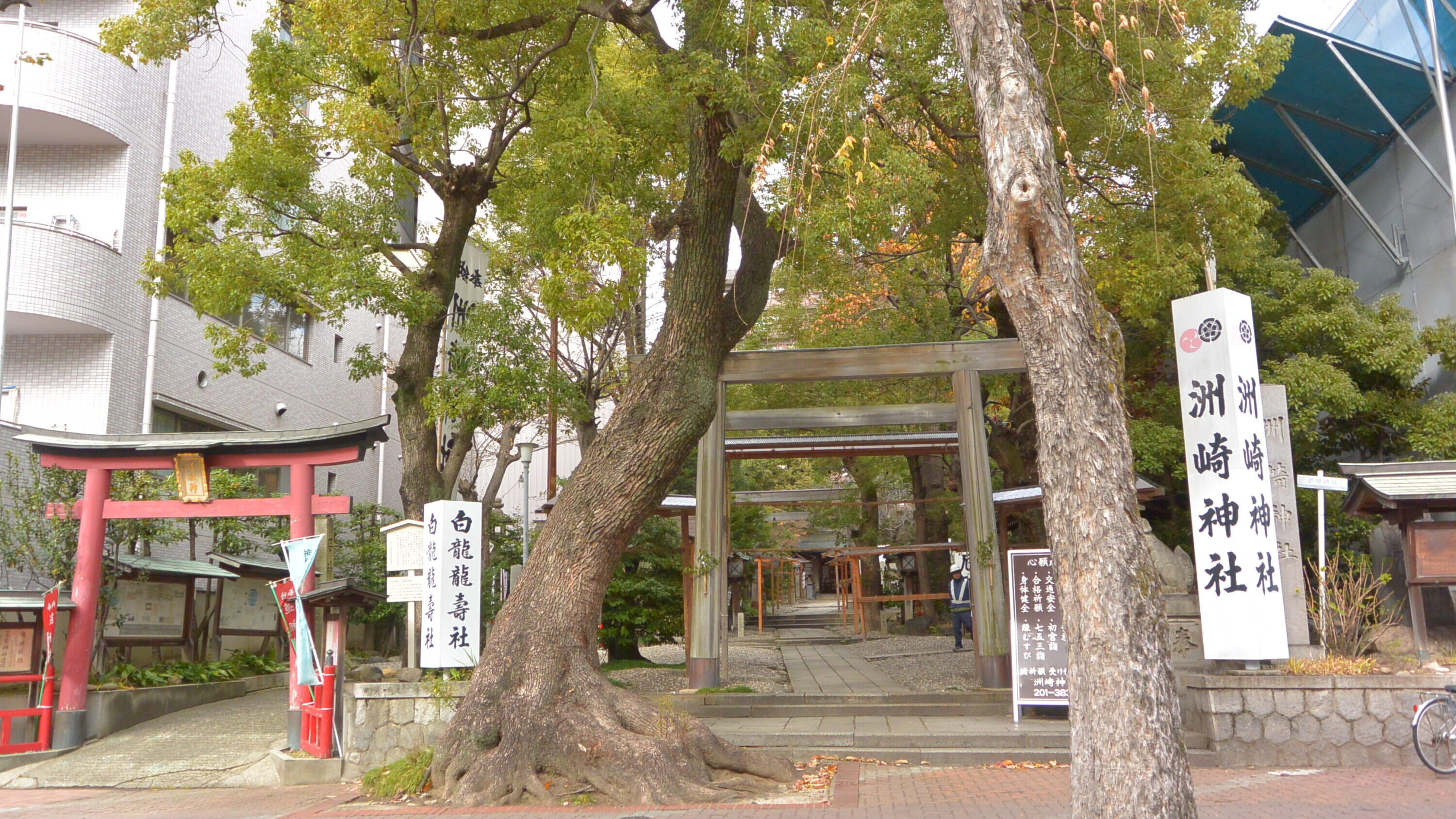 洲崎神社(すざきじんじゃ)。「広井天王」や「牛頭天王」とも呼ばれています。縁結びから芸事まで多彩な神様が集う場所として有名です。導きの神様の前にある「小さな鳥居」をくぐり抜ければ、良縁や願いが成就すると言われています。