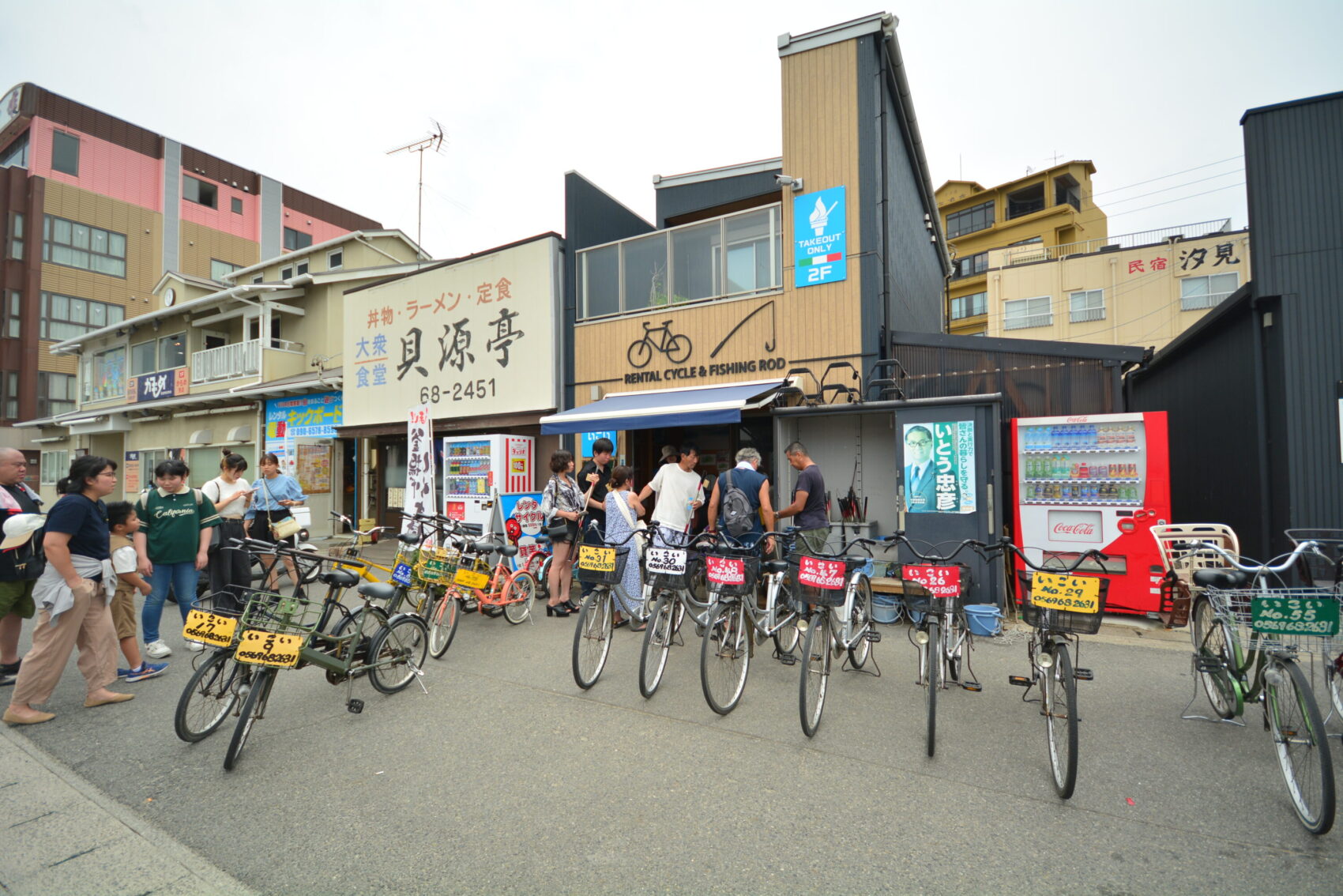 島に到着したら、まずは「レンタサイクル」を確保するのがおすすめ。周囲約5.5kmの小さな島なので、自転車なら30分ほどでぐるっと一周できてしまいます。海岸沿いの平坦な道を風を切って走るのは、メチャクチャ爽快。
