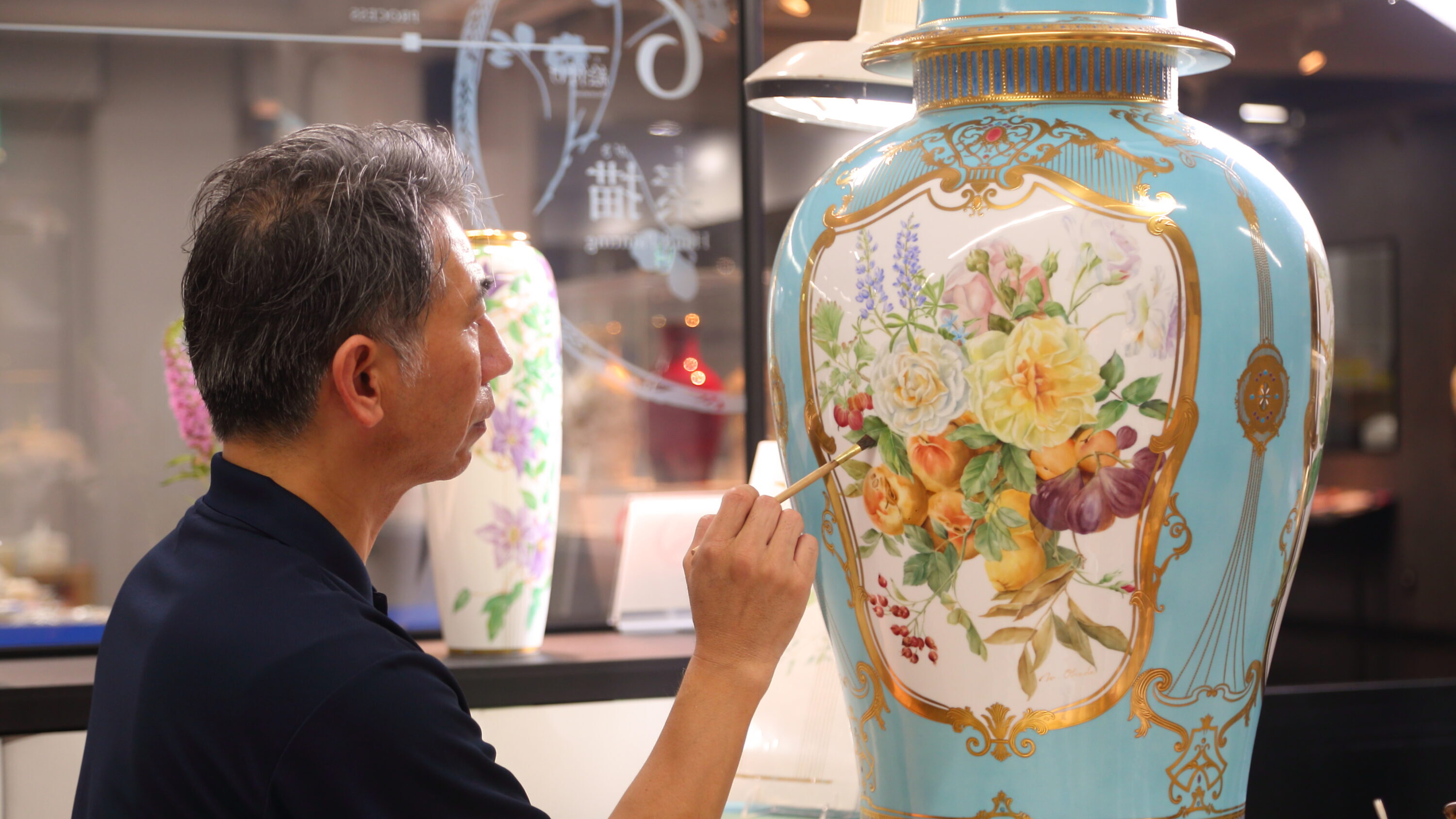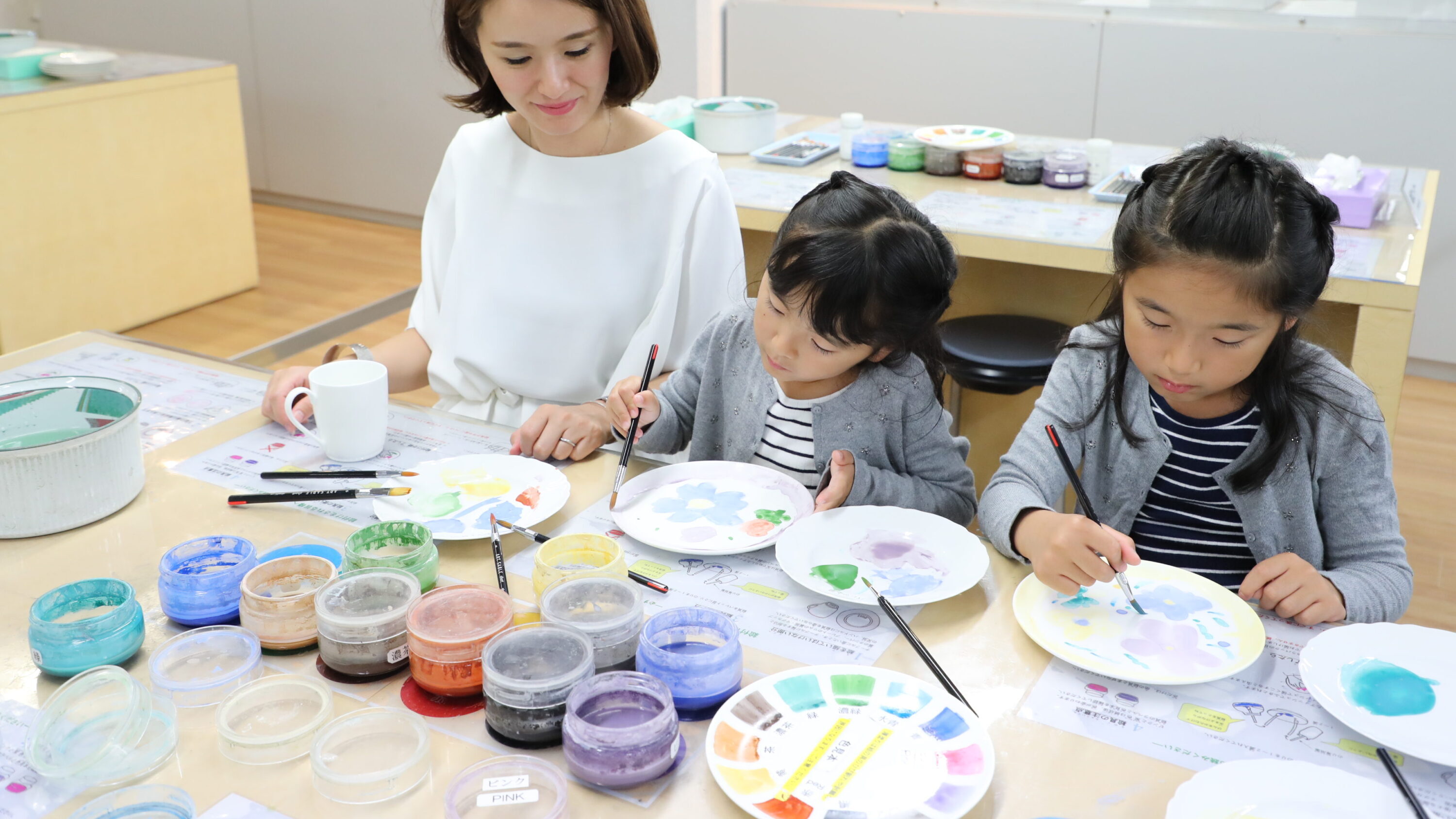 ボーンチャイナの製造工場である「クラフトセンター」では、職人の絵付け作業が間近で見られるほか、お皿やマグに自由に絵を描いて世界に一つの作品を作ることができる絵付け体験(有料)も魅力。