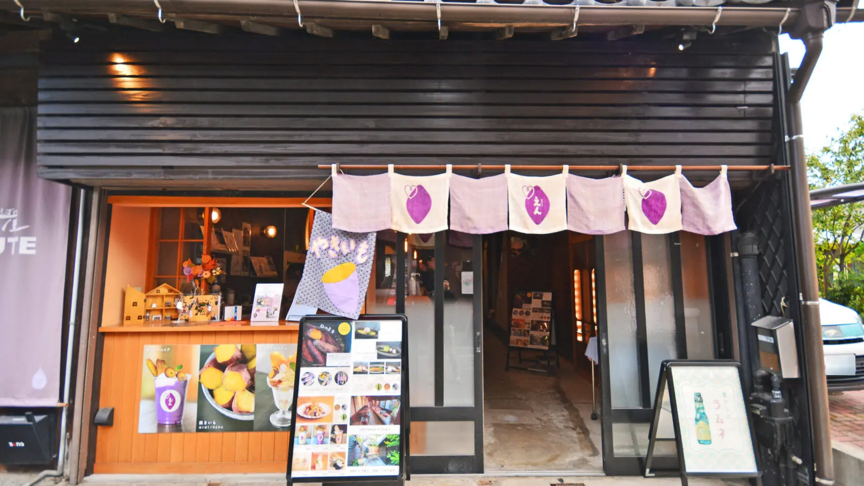 2021年にオープンしたおいもスイーツ専門店「芋カフェえん」。茨城県産のブランド「紅春香」を使った多種多様なスイーツが楽しめます。店内で焼く「焼きいも」からシェイク・ブリュレ・モンブランなど幅が広くどれも美味しそう。