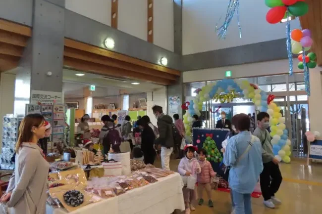 豊田市で開催される「クリスマスマーケット in HOMI」。館内外に雑貨やお菓子、各国グルメなどのブースが並び、多文化が交わるにぎやかなマーケットです。