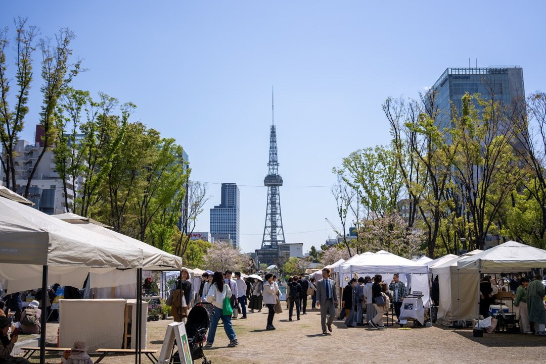 名古屋栄の久屋大通公園で開催される「Hisaya market」。テレビ塔の北側にあるシバフヒロバで毎月10日に開催されているマーケットイベントです。