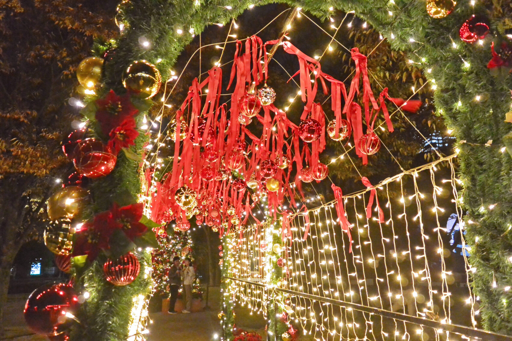 光のトンネルや光の滝、ハート形オブジェ、センターツリーなどフォトスポットが盛りだくさん。会場の一部にはベンチやテーブルが設置され、温かいドリンク片手にゆったりとイルミネーションを楽しめるのもうれしいポイントです。カップルはもちろん、家族連れや友人同士にもおすすめ。