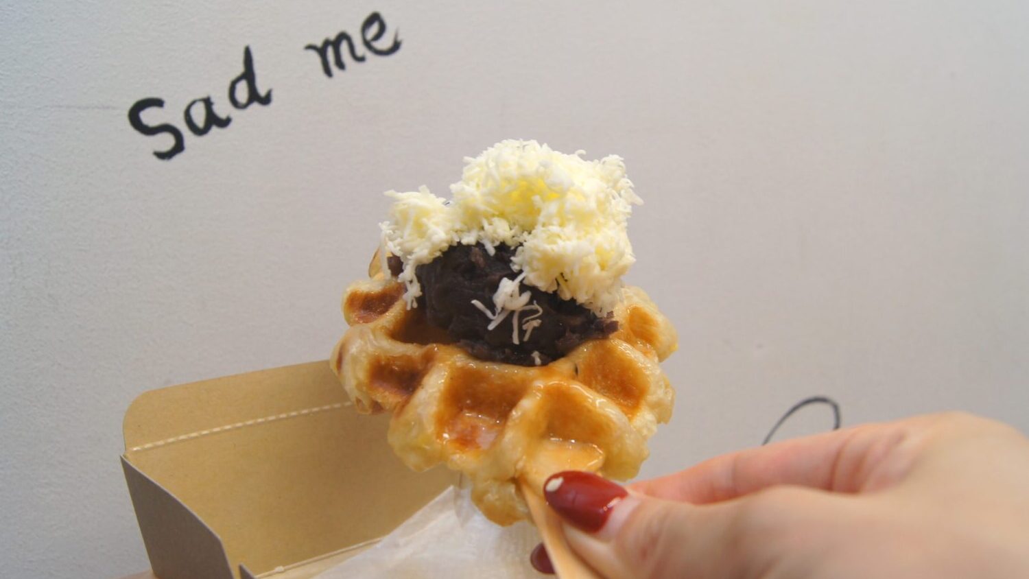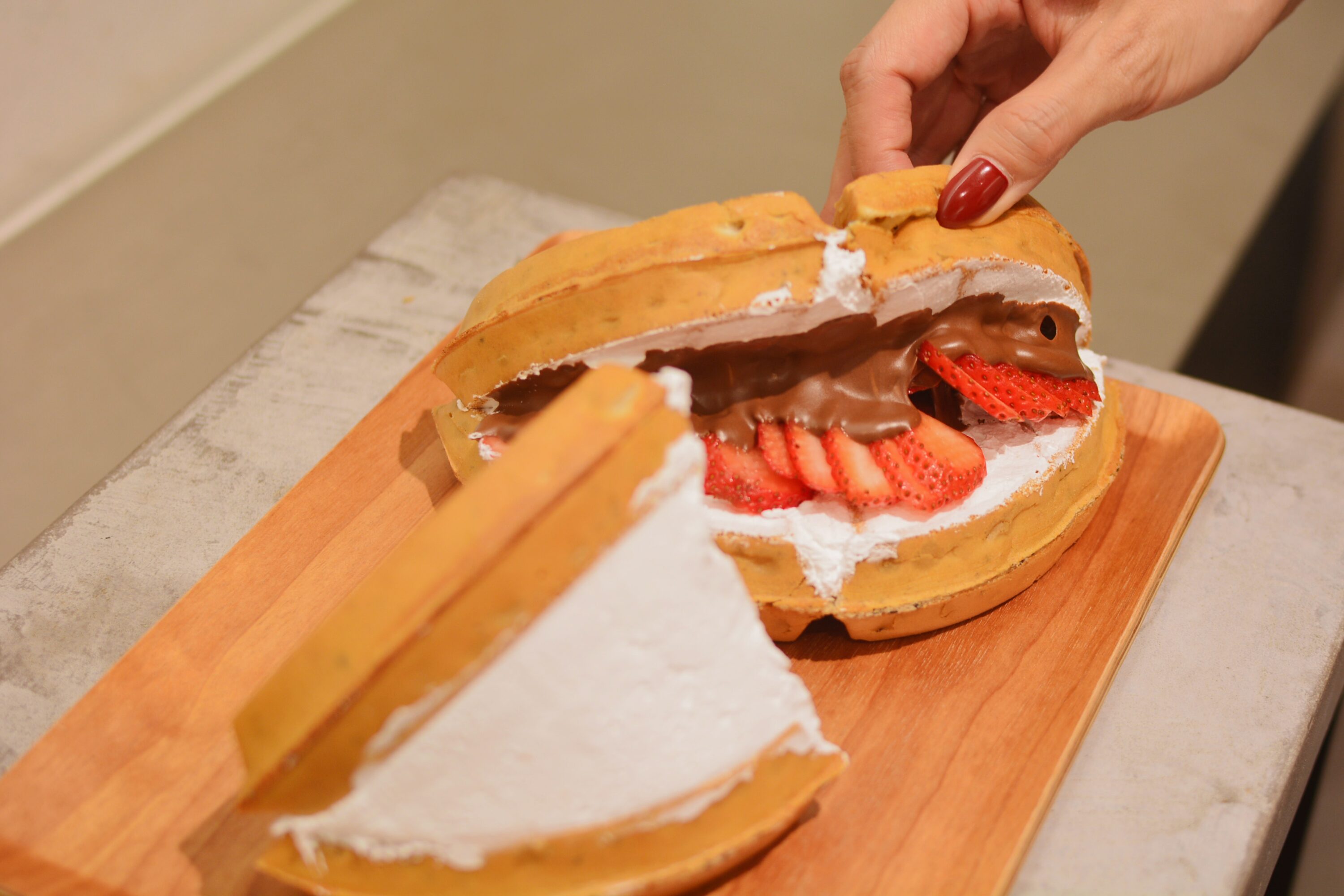 看板メニューは、食べ歩きできるように串にささったクロッフル「クロ・グリ」。高温と低温の2段階で焼き上げることで、「パリッ」と「フワッ」を2度楽しめる新感覚のスイーツです。