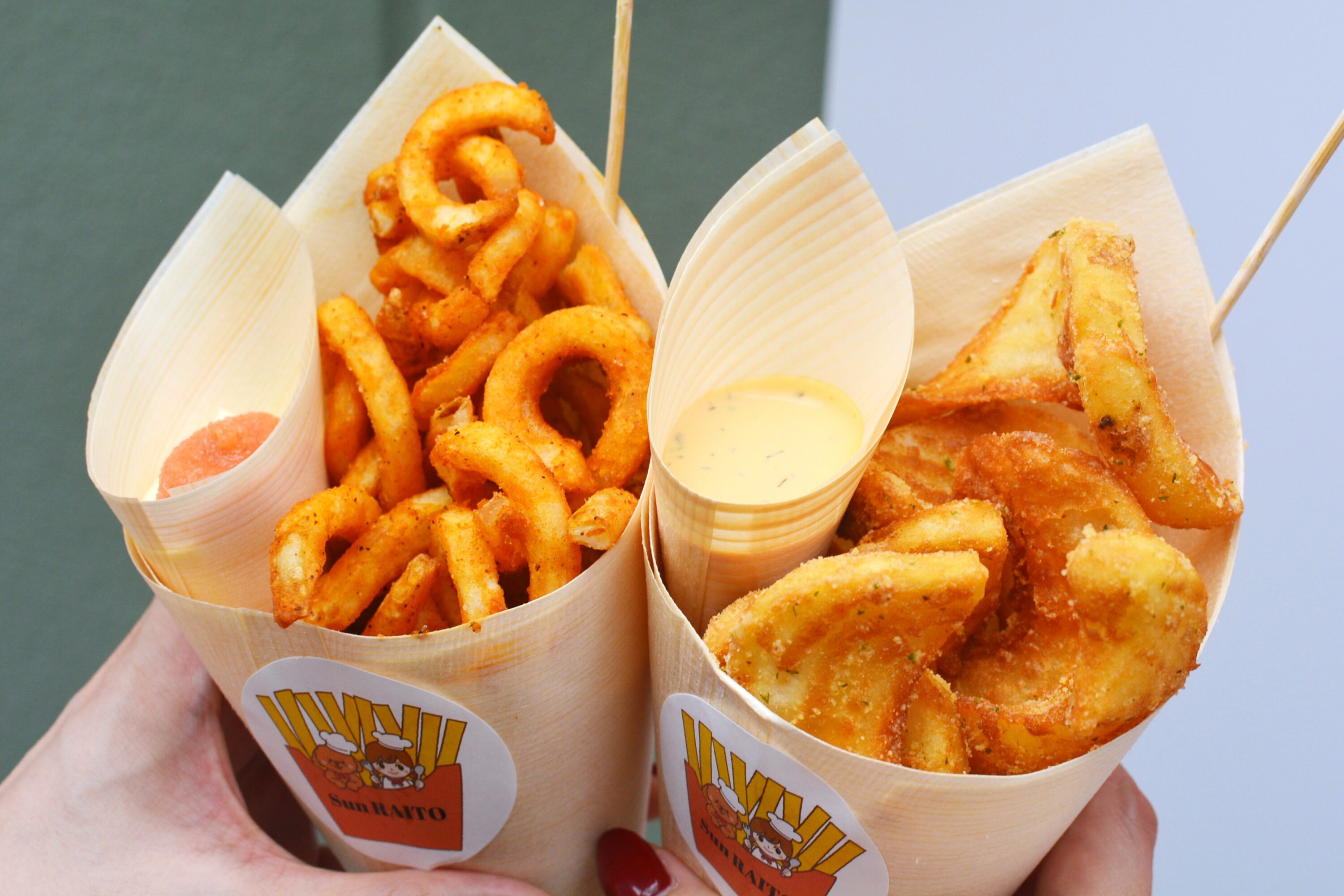 2025年4月にオープンしたフライドポテト専門店「Sun RAITO」。自分好みにカスタマイズできる自由度の高いフライドポテトが楽しいお店です。テイクアウトがメインですが店内にイートインスペースもあるので、雨の日でも安心。