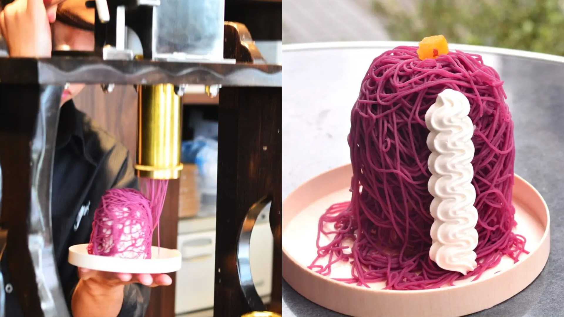 クロッフルのメニューは10種類以上とバラエティ豊か。その場で作る搾りたてモンブランをかけたクロッフルもありますよ。