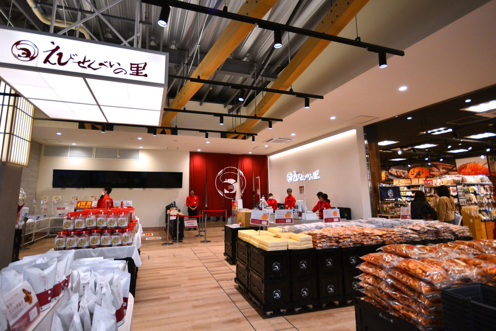 セントレアや刈谷ハイウェイオアシスにも店舗を構える愛知県の知多半島発祥のえびせんべいのテーマパーク「えびせんべいの里」が商業施設に初出店です。