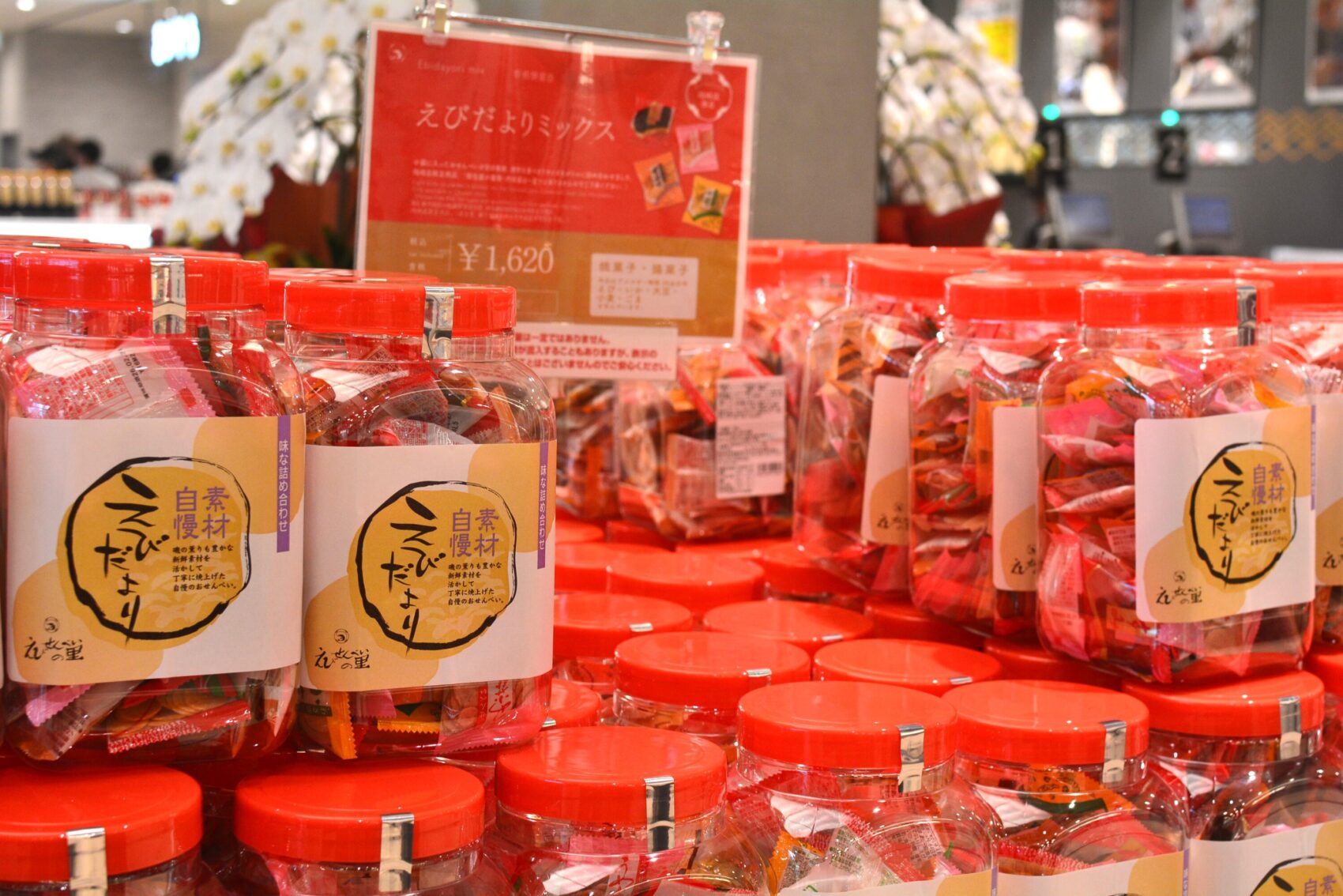 店舗にはバラエティ豊かなラインナップが並ぶので、お土産にも最適。岡崎店限定の詰め合わせ「えびだよりミックス」は駄菓子屋さんのようなパッケージングが可愛くておすすめです。