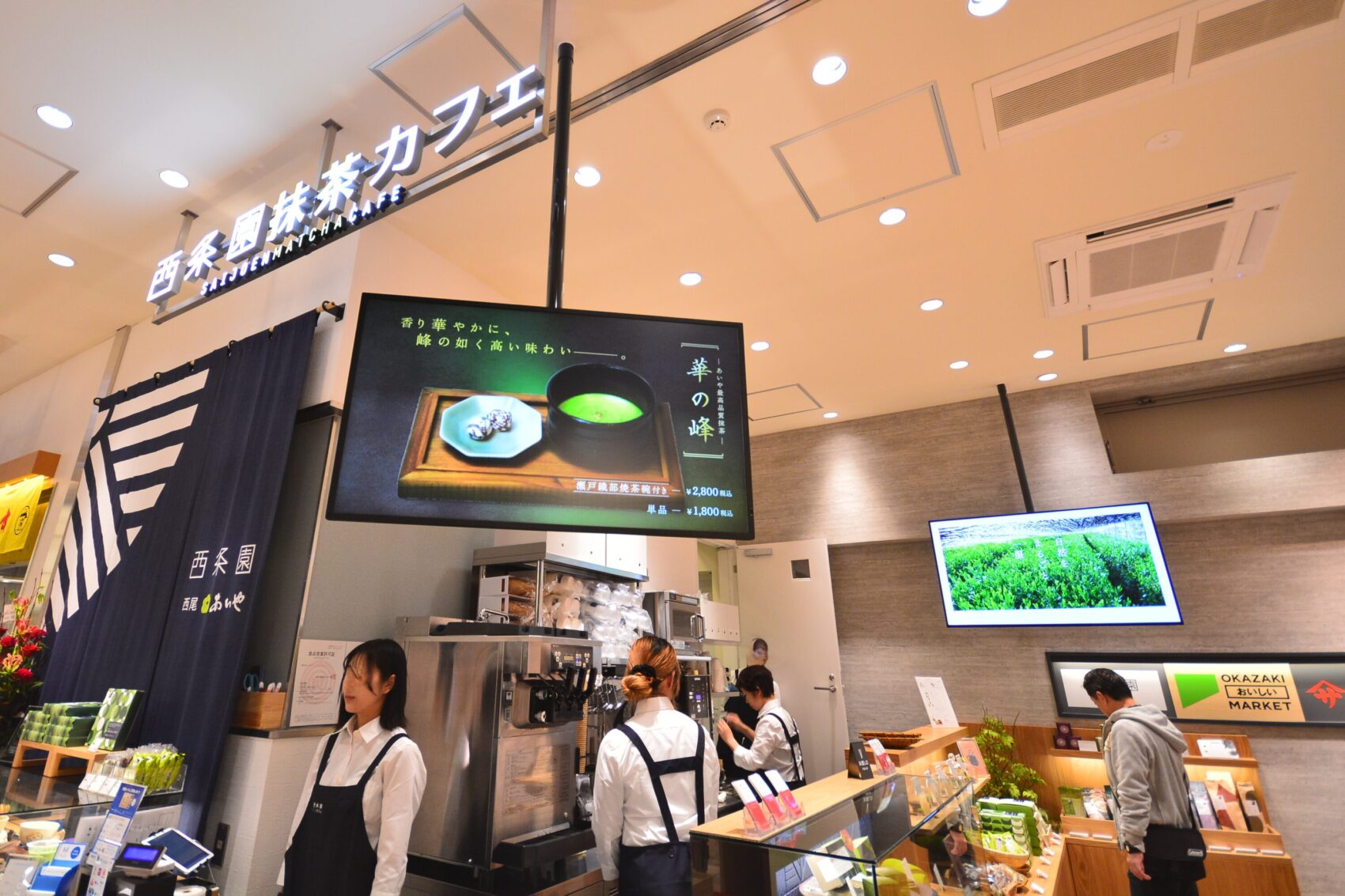 1888年創業の西尾市の老舗抹茶メーカー「あいや」が手がける本格的な抹茶カフェです。看板メニューは、抹茶の豊かな香りとほろ苦さが楽しめる「濃い抹茶ソフト」。
