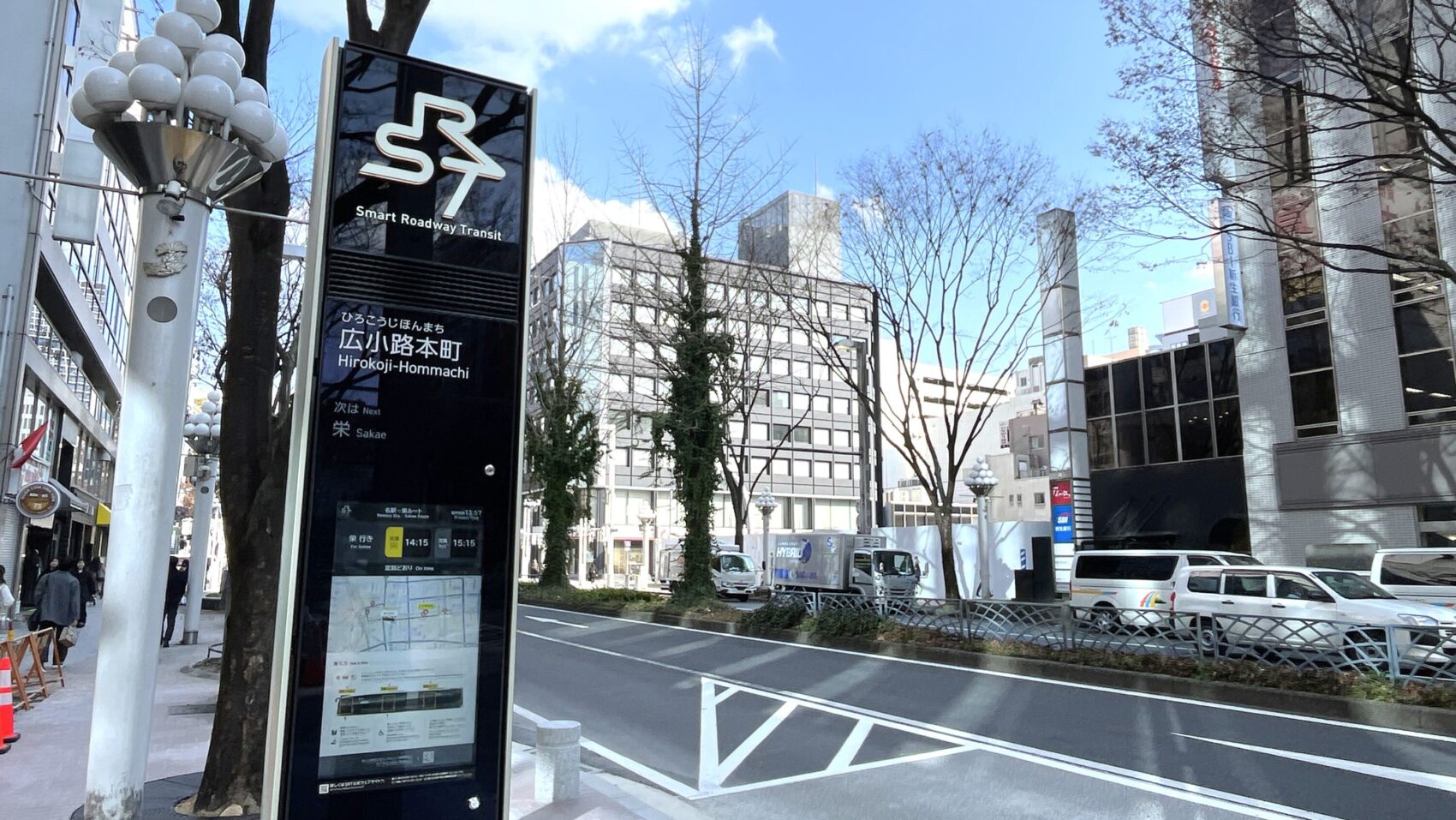 SRTは名古屋駅と栄を広小路通で結ぶ「東西ルート」で運行しています。栄を起終点として7つの停留所を巡回するルートで、名古屋の都心部を気軽に移動できます。地下鉄のように上り下りがないのは嬉しいポイント。
