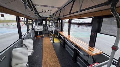 停留所もSRTの世界観に合わせてデザインされており、ウッド調のベンチやガラスウインドウ、運行情報や周辺施設の案内を表示するデジタルサイネージが設置されるなど、先進的で目を引く空間となっています。