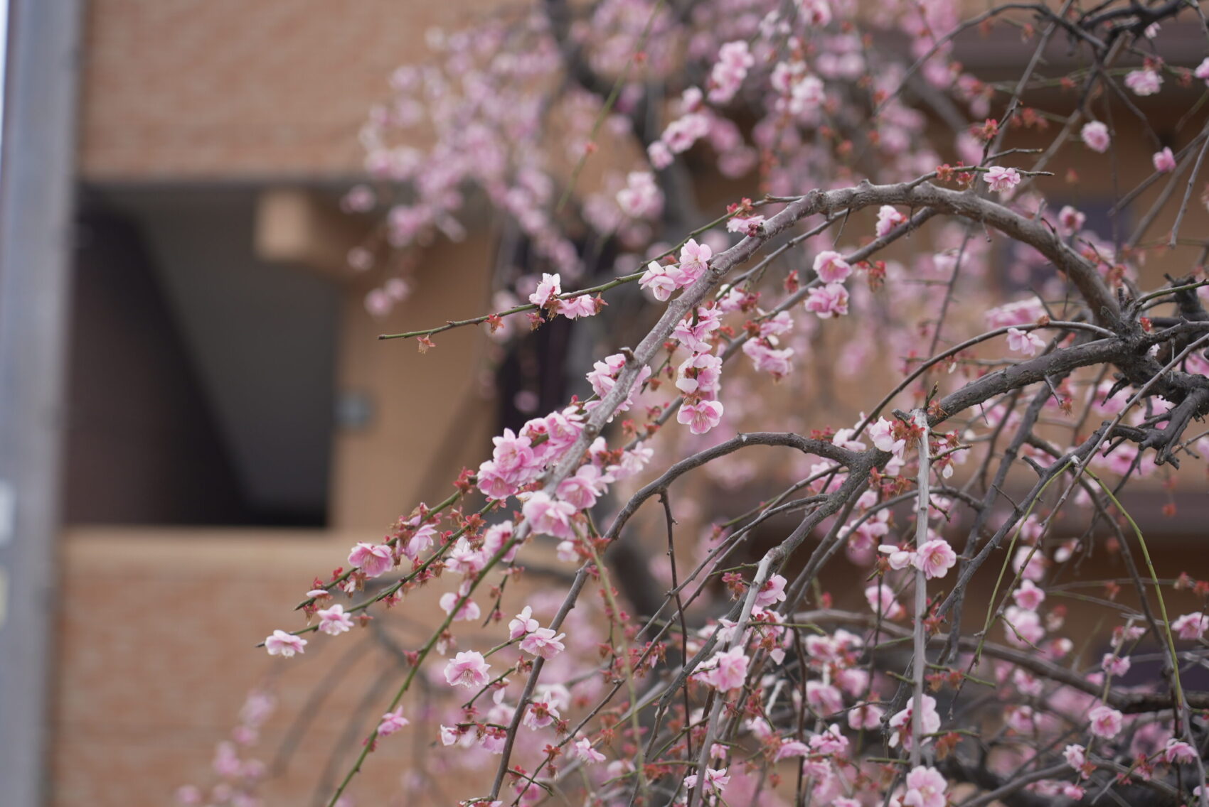敷地に数本植えられたオオサカズキの梅は、濃いピンク色でひときわ目を引きます。メジロが飛来することもあるので、ぜひ写真を撮ってみてください。