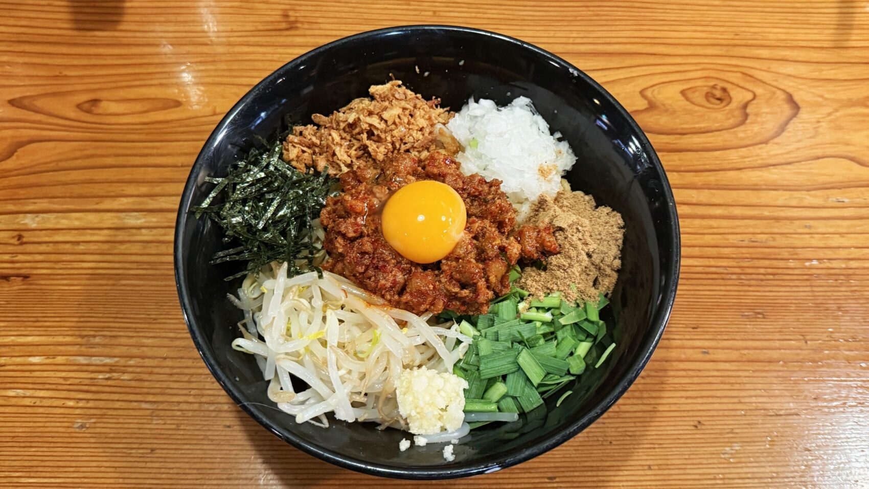 サクサクにんにくチップと玉ねぎの食感が楽しい!バランス抜群の台湾まぜそば